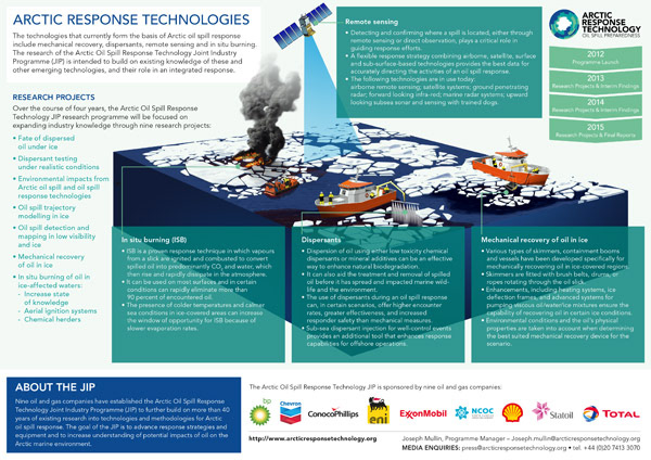 Infographic about technologies and methodologies for Arctic oil spill response